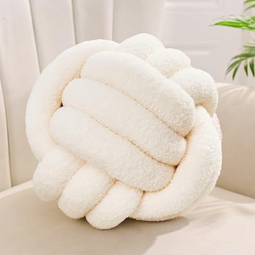 Yhoelata knutkudde, dekorativ kudde beige vit, prydnadskudde estetisk soffkudde i teddysammet, säng dekorativa kuddar runda för barn sovrum, gåva 22 cm