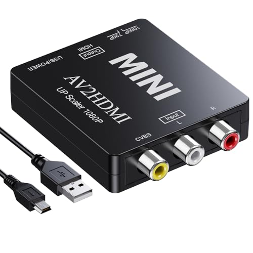 DigitPro RCA till HDMI-omvandlare, 1080P AV till HDMI-adapter, stöder PAL/NTSC, PS2 Wii Xbox N64 VHS VCR DVD