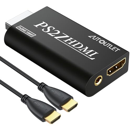 AUTOUTLET PS2 till HDMI Omvandlare Med 3,5 Mm Hörlursuttag Och 1,5 M Kabel - Adapter för HDTV Monitor
