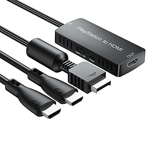 AUTOUTLET PS1/PS2 till HDMI-adapter, äkta plug and play, stöder 4:3/16:9 konvertering, 1080P HDMI-omvandlare för PS1/PS2 med kabeldesign, PS1 PS2 HDMI-kabel för HDTV-skärm