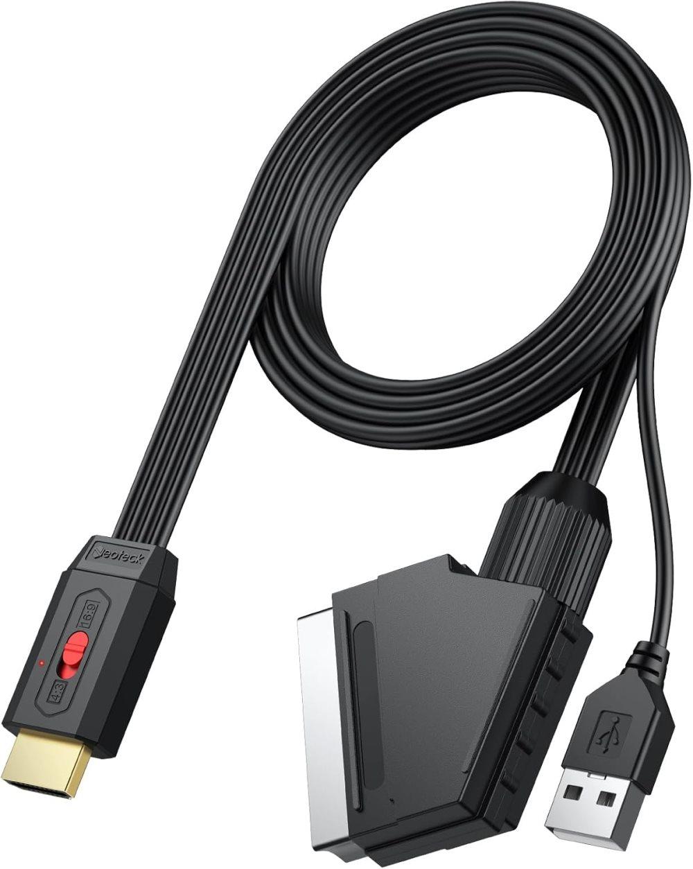 Neoteck SCART till HDMI-omvandlare, 1080P, 16:9/4:3-konvertering, komposit CVBS-ljudvideoadapter, PAL/NTSC, för Wii / PS1 / PS2 / N64 / Xbox