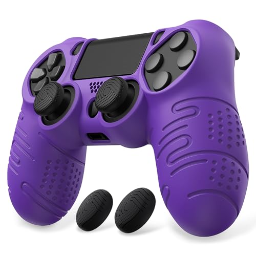 PlayVital Line & Dot Silikonskins för ps4 Grip Protective Skin,Silikonfodral Kontroll Skal för ps4 Slim/Pro med Tumgreppskåpor-Lila