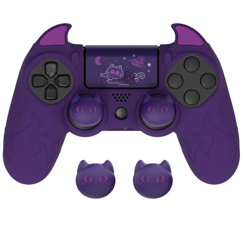 PlayVital Silikonkontroller Skins för ps4 med Tumgrepp & Klistermärken,Söt Demon Skyddsfodral för ps4 Slim/Pro Controller Halkskydd Cover Grip Protector för ps4-Lila