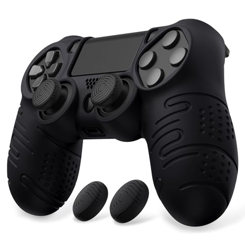PlayVital Line & Dot Silikonskins för ps4 Grip Protective Skin,Silikonfodral Kontroll Skal för ps4 Slim/Pro med Tumgreppskåpor-Svart