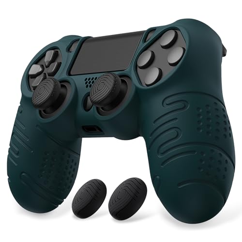 PlayVital Line & Dot Silikonskins för ps4 Grip Protective Skin,Silikonfodral Kontroll Skal för ps4 Slim/Pro med Tumgreppskåpor-Racinggrön