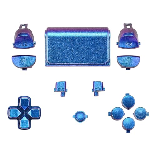eXtremeRate D-pad R1 L1 R2 L2 Trigger Touchpad Action Hem Delningsalternativ Knappar för ps4 Controller, Kameleont Lila Blå Full Set Knappar Reparationssatser för ps4 Slim Pro CUH-ZCT2 Controller