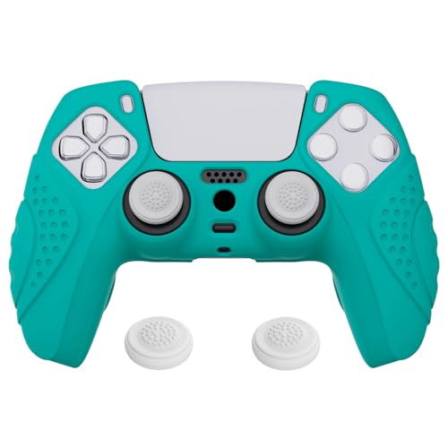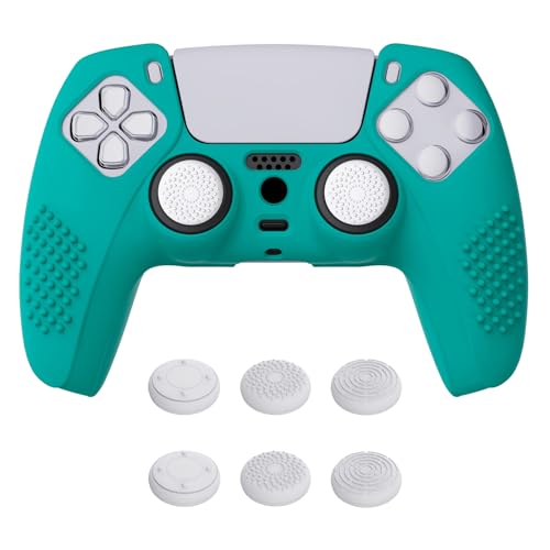 eXtremeRate PlayVital Skydd Fodral för ps5-kontroller,Halkskydd Silikonskal Hölje för ps5 Controller,Silikon Skydd Hud Ärm Skyddande för ps5 med 6 Joystickhölje-Aqua Grönt(3D-Studded Edition)