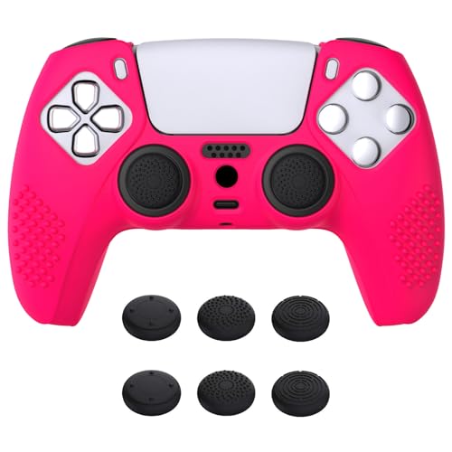 eXtremeRate PlayVital Skydd Fodral för ps5-kontroller,Halkskydd Silikonskal Hölje för ps5 Controller,Silikon Skydd Hud Ärm Skyddande för ps5 med 6 Joystickhölje-Rosa(3D-Studded Edition)
