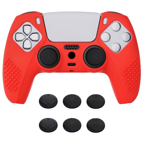 eXtremeRate PlayVital Skydd Fodral för ps5-kontroller,Halkskydd Silikonskal Hölje för ps5 Controller,Silikon Skydd Hud Ärm Skyddande för ps5 med 6 Joystickhölje-Passionsröd(3D-Studded Edition)