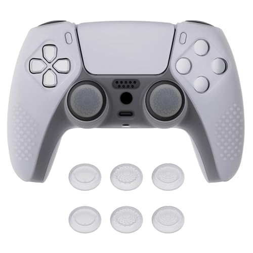 eXtremeRate PlayVital Halkfritt Skydd Fodral Kompatibelt med ps5-kontroller,Halkskydd Silikonskal Hölje för ps5,Silikon Skyddande för ps5 med 2 Joystickhölje-Vit(Guardian Edition)