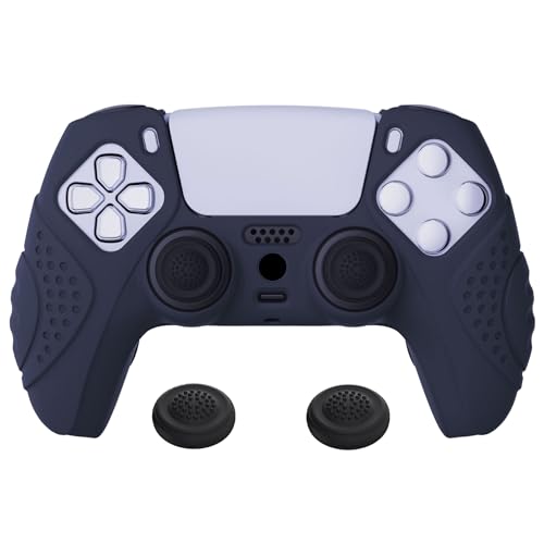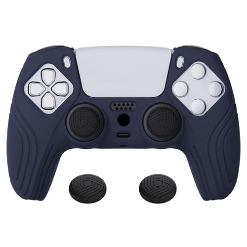 eXtremeRate PlayVital Halkfritt Skydd Fodral Kompatibelt med ps5-kontroller,Halkskydd Silikonskal Hölje för ps5,Silikon Skyddande för ps5 med 2 Joystickhölje-Midnattsblå(Guardian Edition)