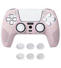 eXtremeRate PlayVital Skydd Fodral för ps5-kontroller,Halkskydd Silikonskal Hölje för ps5 Controller,Silikon Skydd Hud Ärm Skyddande för ps5 med 6 Joystickhölje-Ljusrosa(3D-Studded Edition)