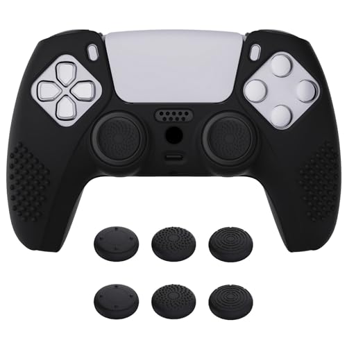 eXtremeRate PlayVital Skydd Fodral för ps5-kontroller,Halkskydd Silikonskal Hölje för ps5 Controller,Silikon Skydd Hud Ärm Skyddande för ps5 med 6 Joystickhölje-Svart(3D-Studded Edition)