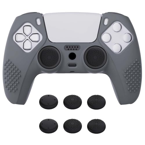 eXtremeRate PlayVital Skydd Fodral för ps5-kontroller,Halkskydd Silikonskal Hölje för ps5 Controller,Silikon Skydd Hud Ärm Skyddande för ps5 med 6 Joystickhölje-Grå(3D-Studded Edition)