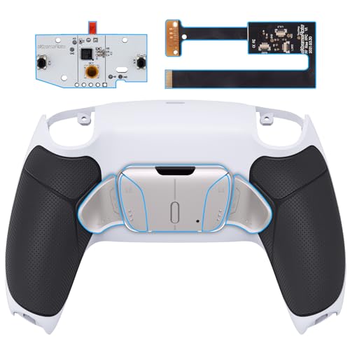 eXtremeRate Programmerbar RISE4 Remap Kit för ps5 Controller BDM 010/020,Real Metal Buttons Version Gummigrepp Cover&Bakskal Shell&4 Baknappar Attachment för ps5 Controller-Svart&Vit