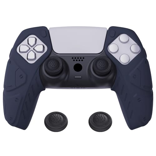 PlayVital Silikonskal Hölje för ps5,Anti-slip Gummiskydd Fodral för ps5-kontroller,Mjukt Silikonskinn för ps5 Laddningsstation Protective Case Cover med Tumgreppsskydd-Midnattsblå(Mecha Edition)