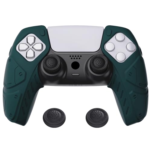PlayVital Silikonskal Hölje för ps5,Anti-slip Gummiskydd Fodral för ps5-kontroller,Mjukt Silikonskinn för ps5 Laddningsstation Protective Case Cover med Tumgreppsskydd-Grön(Mecha Edition)