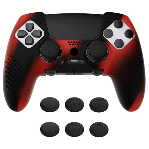 PlayVital Anti-Slip Silicone Cover Case för ps5 Edge Controller,Mjukt Gummiskydd för ps5 Edge Wireless Controller med 6 Tumgrepp-Röd&Svart(3D Studded Edition)