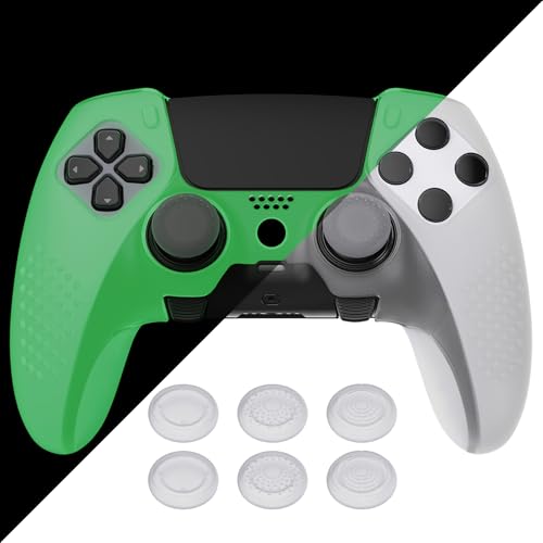 PlayVital Anti-Slip Silicone Cover Case för ps5 Edge Controller,Mjukt Gummiskydd för ps5 Edge Wireless Controller med 6 Tumgrepp-Glöd i Mörkret-Grön(3D Studded Edition)