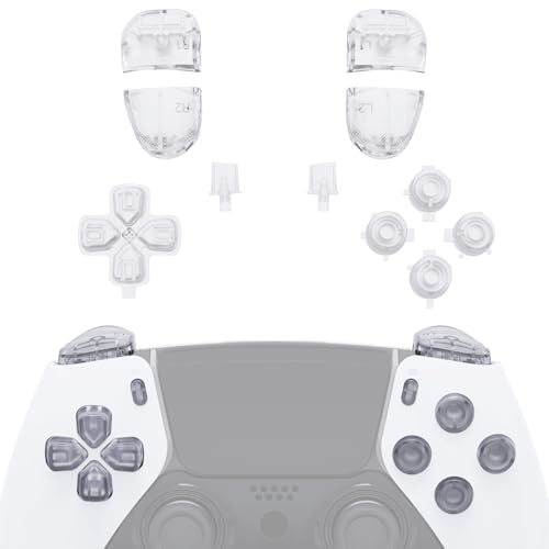 eXtremeRate Knappar Buttons Ersättning Kompatibel med ps5 Edge Controller, D-pad Share Options Home Face Buttons R1 L1 R2 L2 Triggers Kompatibel med ps5 Edge (Ingen Controller) - Transparent Klar