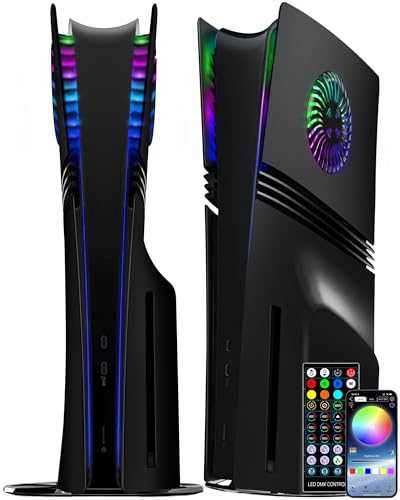 AriKroii PS5 Pro RGB horisontellt stativ för PS5 Slim konsol med fläktkylning och kontrollladdning, förvaringsstativ för hörlurar