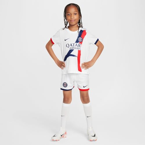 NIKE Kids' PSG LK NK BRT KIT AW fotbollsset, vit/(Old Royal) (Full Sponsor), M