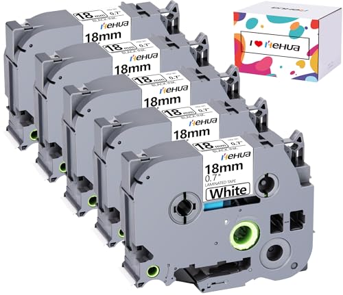 5x hehua TZe-241 etikett-tejp P-touch Tze241 18 mm x 8 m laminerad svart på vitt, kompatibel med PT-D450VP PTD400 PTE300VP PTE500VP PT-P900W PT-P950NW PTD600VP PT-P750W