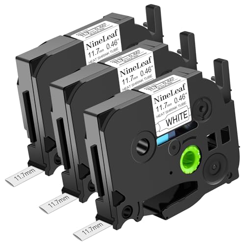 NineLeaf 3-pack krympslang HSe231 HSe-231 11,7 mm etiketttejp kassett kompatibel för Brother P-Touch PT E300 E300VP E500 E550WVP P750WVP H300 etikettmarkör, 11,7 mm x 1,5 m, svart på vit