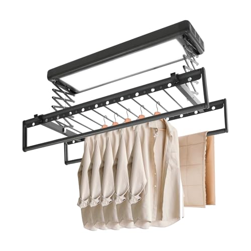 800 W kompakt elektrisk torkställning takmontering PTC-keramik-element taktork LED-belysning tak torkställning 35 kg lastkapacitet fjärrkontroll 122–210 x 52 x 120 cm (grå)