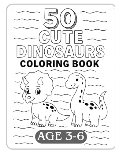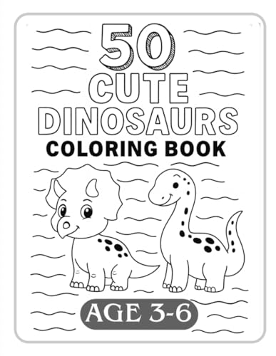 50 Cute Dinosaurs Coloring Book: Fun Dinosaur Coloring Pages for Kids Ages 3 to 6 | T-Rex, Stegosaurus, Brontosaurus, Pterodactyl & More!