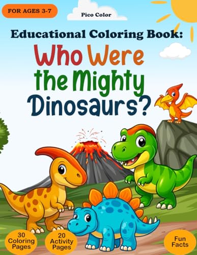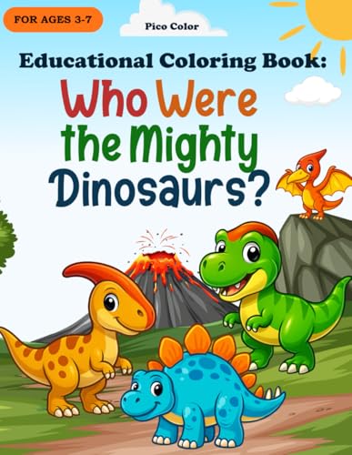 Educational Coloring Book: Who Were the Mighty Dinosaurs?: A fun and educational dinosaur coloring book for kids ages 3-7 - includes T. rex, Stegosaurus, Pterodactyl, and more!