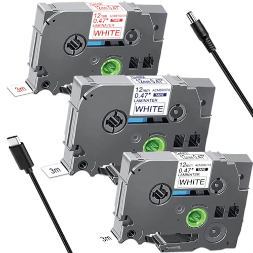 Acmerota Kompatibel med Brother TZe-FA231 TZe-FA3 TZe-FA3R 12 mm x 3 m, tygstrykningstejp för Brother P-Touch 1000 1010 D400 1000 1280 E100 H100 H400L H10,3-pack