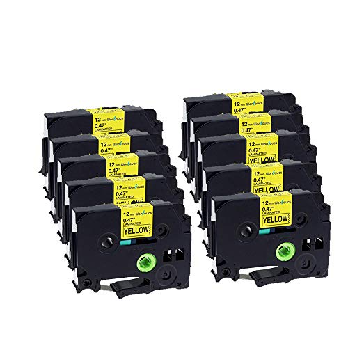 KA® Kompatibel Brother P-Touch etiketttejp tze-631, 12 mm x 8m, kompatibel med PT-H105, PT-H100, PT-1005, PT-1000, PT-1010, PT-1080, PT-H101c (10 PK, TZE-631, svart på gul)