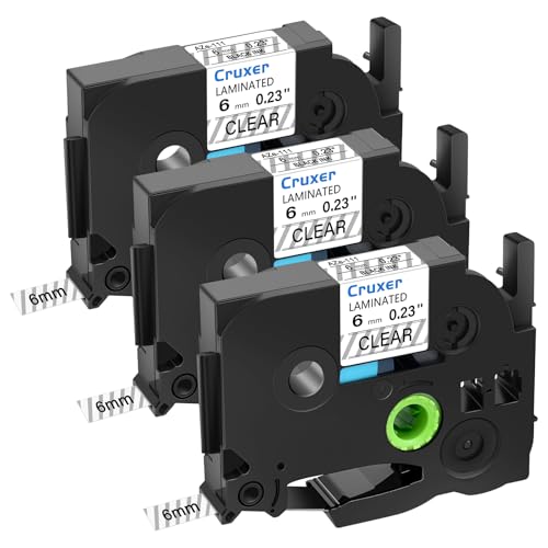 Cruxer 3-pack kompatibel med P-touch TZe-111 TZe111 Clear laminerade band svart text 6 mm transparent etikettband ersättning för Ptouch PT-H100R PT-200 PT-H110 PT-D410 PT-E110VP etikettskrivare