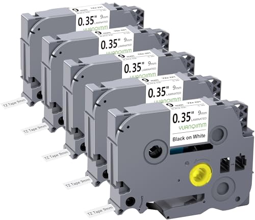 Yuanqimm Compatible for Brother Ptouch Label Tape 9mm TZe221 TZe-221 TZ221 TZ-221 Black on White Tape for Brother PT-D400 PT-H100LB PT-H105 PT-D200 PT-1000 PT-H110 PT-H101 PT-H107B PT-D210, 5-Pack