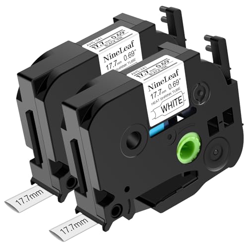 NineLeaf 2 x kompatibel med Brother P-touch HSe-241 HSe241 HS-241 HS241 HSe tejp 17,7 mm x 1,5 m svart på vit varm krympslang för kablar i Ptouch PT-320 330 340 350 etikettband