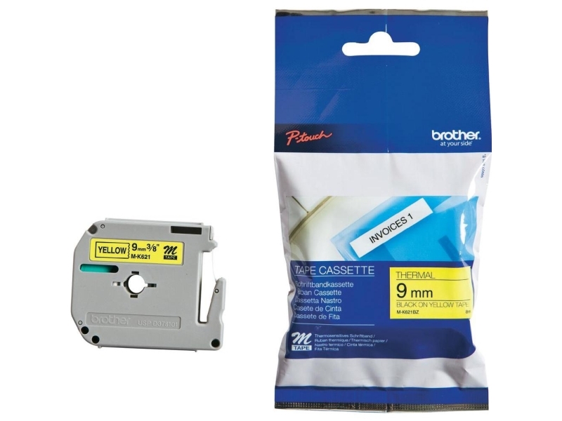 Brother Mk621 - Svart På Gult - Rulle (0,9 Cm X 8 M) 1 Stk Band För Skrivare - För P-Touch Pt-55, Pt-65, Pt-70, Pt-80, Pt-90, Pt-Bb4, Pt-M95