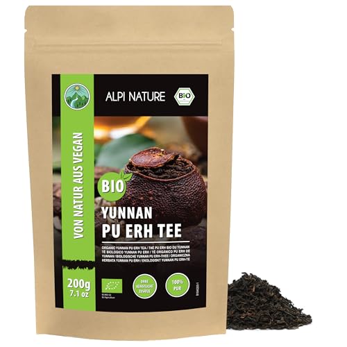 Alpi Nature EKOLOGISK Pu Erh (200g), löst Pu Erh-te, torkad Pu Erh, Pu Erh från kontrollerad ekologisk odling, 100 procent naturligt, utan tillsatser