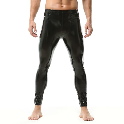 QiaTi herr PU-läderbyxor elastisk midja tajta byxor herr leggings PU slim fit långa byxor för rock punk motorcykel, 2# svart, XL