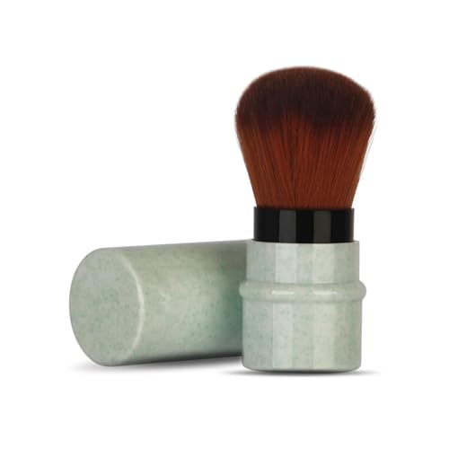 Make up borstar för rouge, puder, foundation, concealer Retractable Kabuki Cap med återvunnet och hållbara material grymhet fri Synthetic Taklon borst resor kosmetiska borstar (Grön)