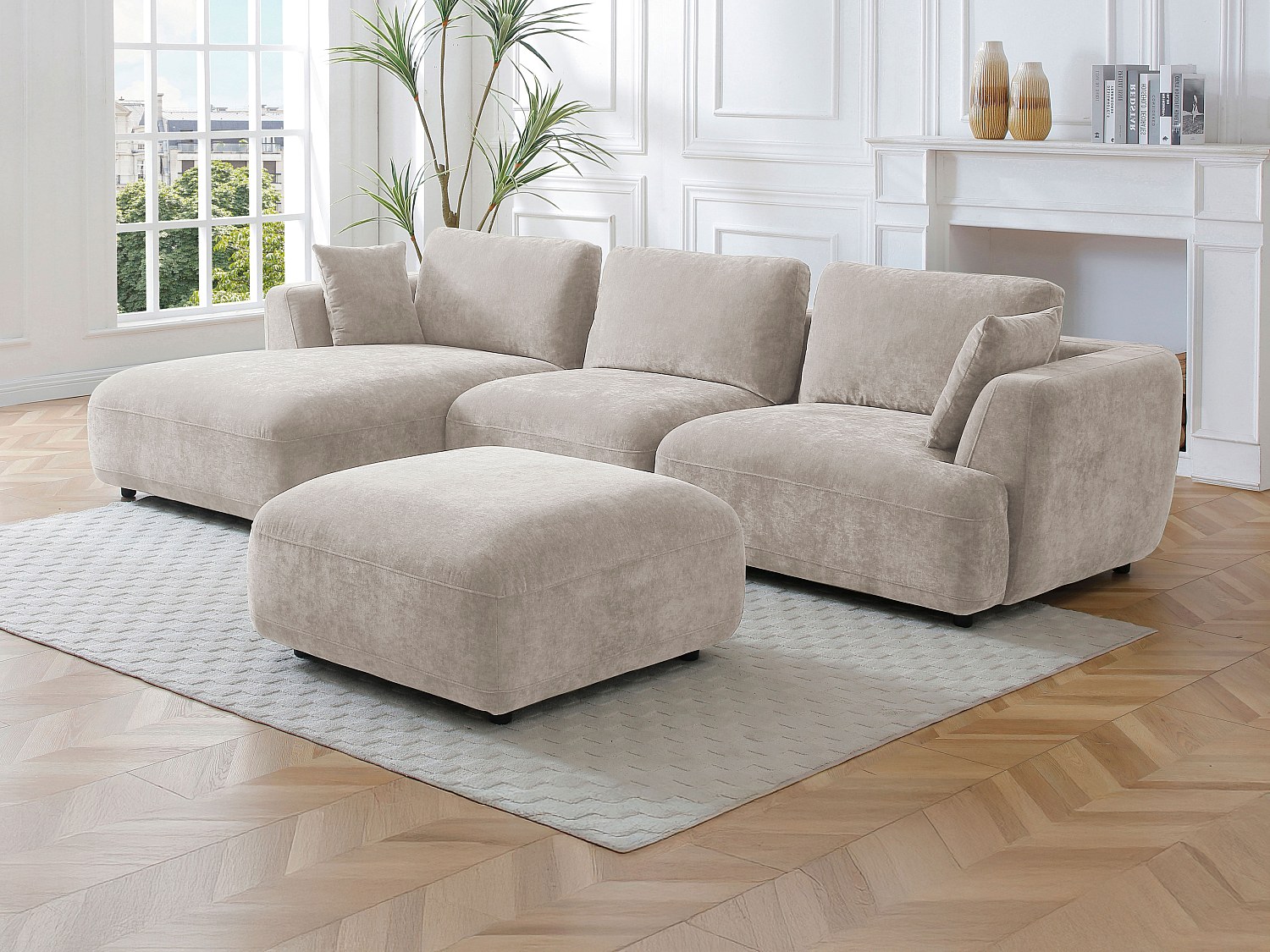 Högervänd hörnsoffa med puff i beige manchester TIRONO från Maison Céphy