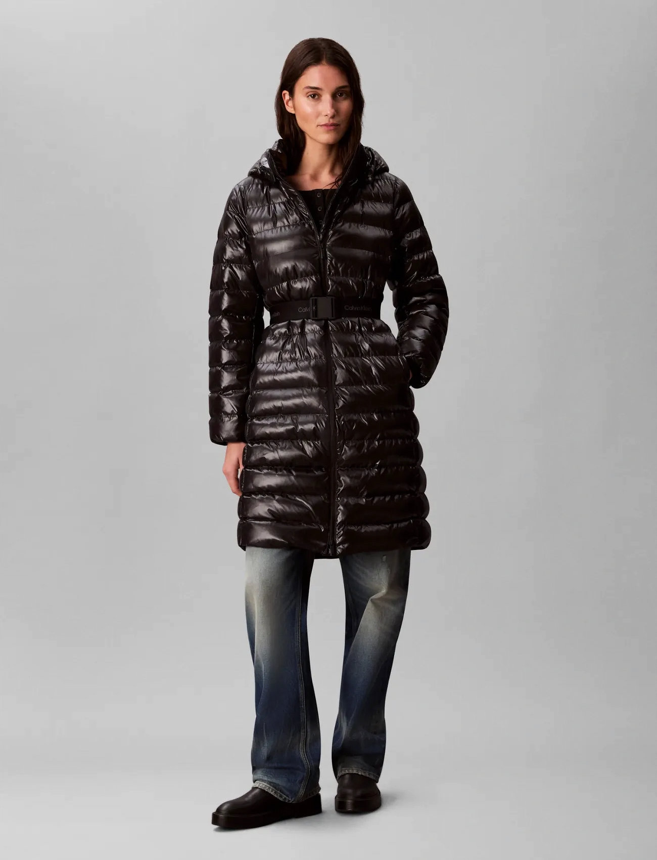 Calvin Klein Jeans Belted Midweight Long Puffer - Black - XXS