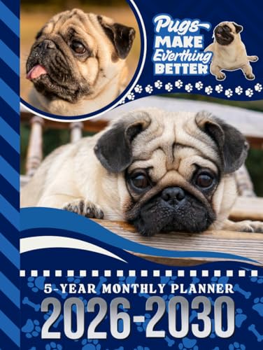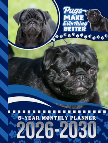 5-Year Monthly Planner 2026-2030: Hardcover / Dated Large / 60 Month Agenda / With Notes Pages - To Do List / Black Pug Dog Art Cover Design