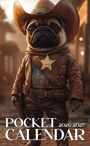 Pocket Calendar 2026-2027: 2-Year Planner for Purse, 24 Monthly from January 2026 to December 2027 with Motivational Quotes | Wild West Sheriff Pug Dog Cover