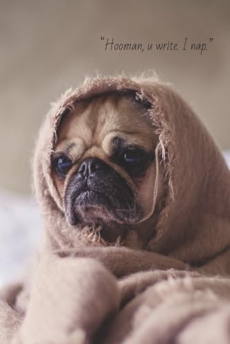 Dot Grid Journal, 110 pages, 6x9". Simple Bullet Journal with full image cover. Pug Journal, Dog Journal: “Hooman, u write. I nap.”