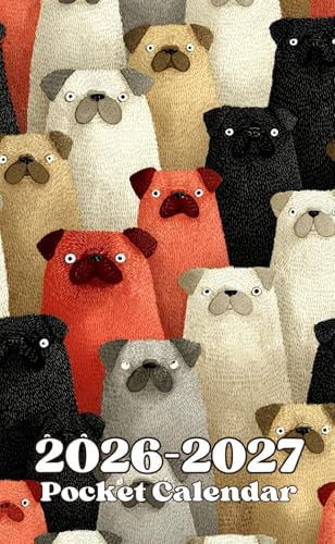Pocket Calendar 2026-2027: Small 2-Year Monthly agenda from January 2026 to December 2027 purse size | Pug Dog Design