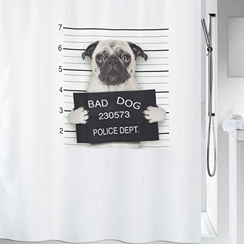Spirella "Bad Dog Pug Duschdraperi, Polyester, Svart/Vit, 180 x 180 cm