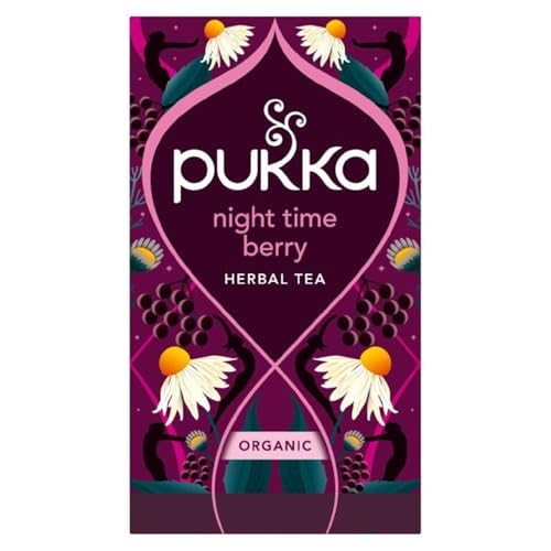 Pukka Herbs | Night Time Berry organiskt örtte | Kamomill, lavendel och fläderbär | Perfekt för läggdags | 4 förpackningar | 80 påsar