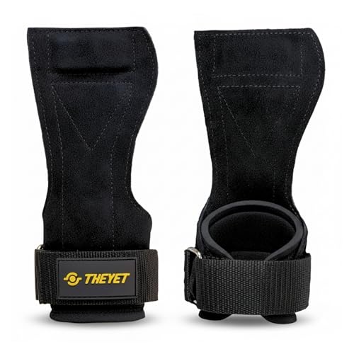 THEYET Läder Handgrepp Crossfit och Gym | Träningshandskar Herr & Dam | Skydd vid Pull-Ups, Vikter & Stång | Integrerat Neopren Handledsstöd | Inkluderad Förhårdnadsfil