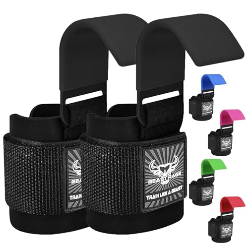 BEAST RAGE Tyngdlyftskrokar Handledsremmar Tjocka neopren vadderade gummibelagda Fitness Wraps Non Slip Pull Up Marklyftsgrepp Träning Träning Gym Träning Män Kvinnor